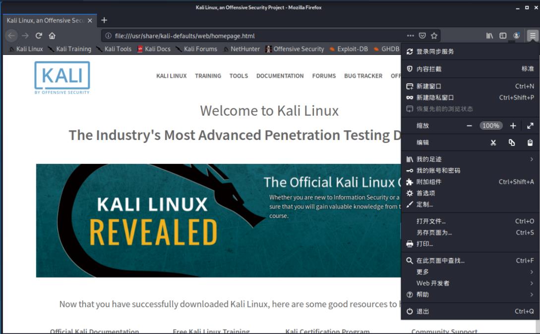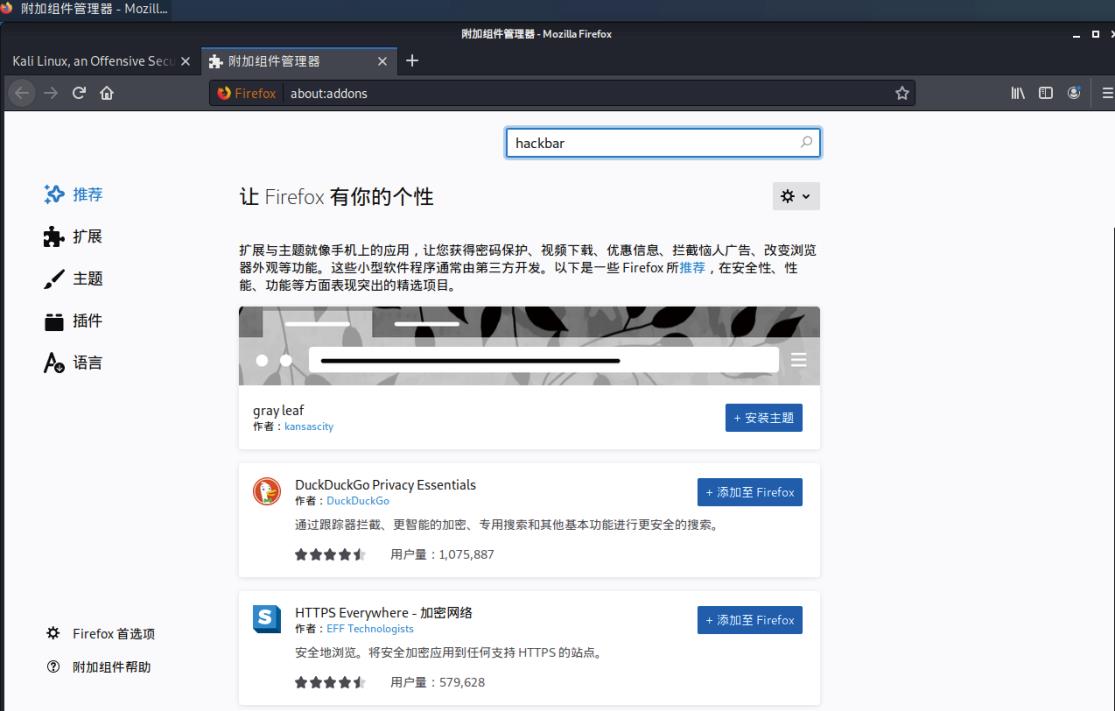 设置好Firefox的语言后,现在还需要安装扩展插件,然后就可以将Firefox作为渗透测试的辅助工具了。