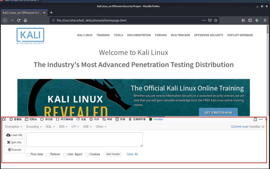 后续在使用HackBar v2时,只需要按下F12键即可将其调出,如图1.41所示。
