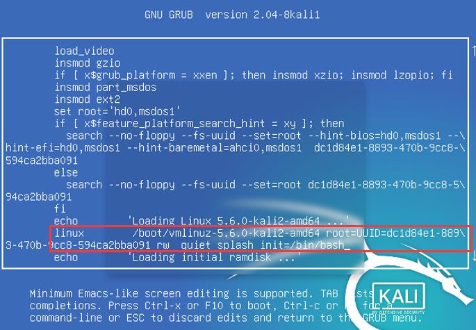 修改完毕后,按F10键保存并进入Kali Linux系统的单用户模式,如图1.33所示。