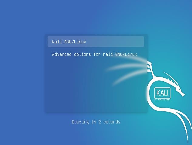 在加载完毕后,Kali Linux会自动请求DHCP服务器分配一个IP地址,而且在分配完IP地址后,还会配置一个主机名(我们将主机名配置为kali)。