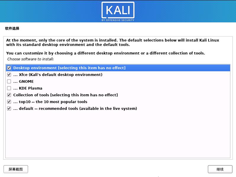 在安装完成后,系统提示选择要安装的软件,如图1.20所示。这里保持默认选项即可。之后,系统开始自动安装选择的软件。具体的安装时间取决于网速,所以此时要确保网络畅通。