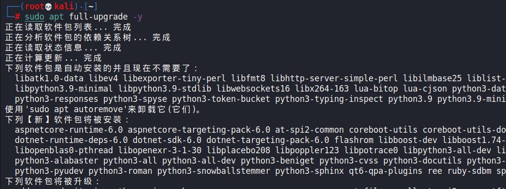 更新完软件源后,只需要输入命令sudo apt full-upgrade -y即可更新软件包,如图1.26所示。
