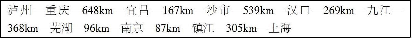 自长江口的上海之长江之滨主要城市的里程表如下: