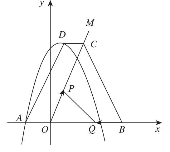 (a≠0)经过点A(-2,0),抛物线的顶点为D,过O作射线OM∥AD.过顶点D作平行于x轴的直线交射线OM于点C,B在x轴正半轴上,连接BC.