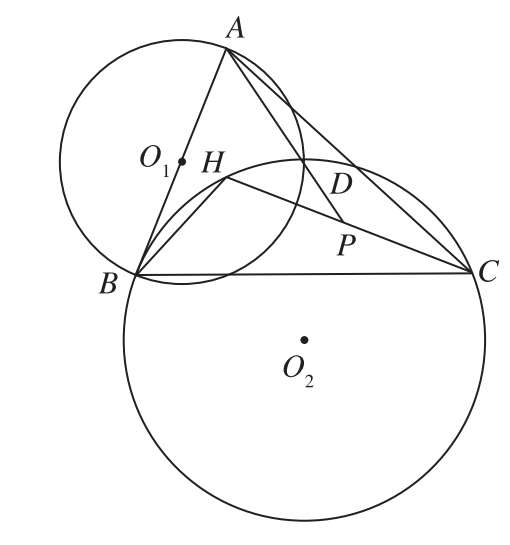 12.如图10-7所示,点H为△ABC的垂心,以AB为直径的☉O 1 和△BCH的外接圆☉O 2 相交于点D,延长AD交CH于点P,求证:点P为CH的中点.