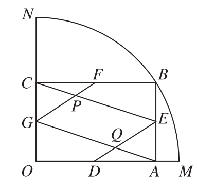 上一动点,BA⊥OM于点A,BC⊥ON于点C,点D、E、F、G分别是线段OA、AB、BC、CO的中点,GF与CE相交于点P,DE与AG相交于点Q.当四边形EPGQ是矩形时,OA=___.