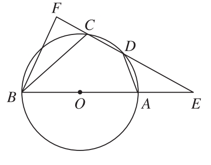9.如图图15-8,四边形ABCD内接于☉O,AB是直径,AD=DC,分别延长BA、CD,交点为E.作BF⊥EC,并与EC的延长线交于点F.若AE=AO,BC=6,则CF的长为___.