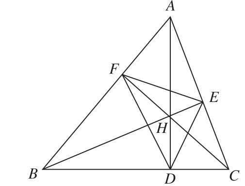 3.如图21-3所示,D,E,F是锐角△ABC三条高的垂足,设△ABC的外接圆半径为R,△DEF的外接圆半径为r,则