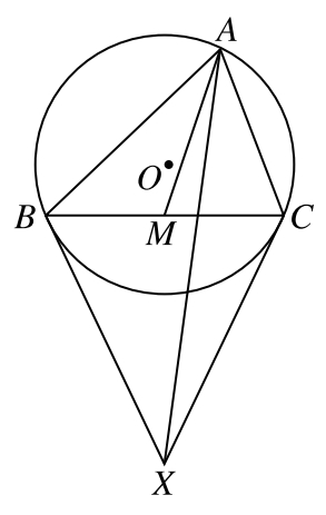 13.如图21-8所示,已知锐角△ABC及其外接圆☉O,AM是BC边的中线,分别过点B、C作☉O的切线,两条切线相交于点X,连接AX,求证:A
