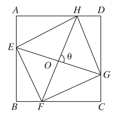 14.如图21-9所示,四边形EFGH是正方形ABCD的内接四边形,点E、F、G、H分别在边AB、BC、CD、DA上,EG和FH交于点O,∠BEG和∠CFH都是锐角,已知EG=k,FH=l,四边形EFGH的面积为S,EG和FH所夹的锐角为θ.