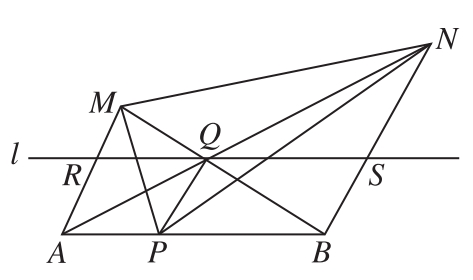 7.如图23-4所示,AB=4,直线l∥AB且与AB距离为2,P在AB上,Q在l上,AR∥PQ交BQ的延长线于M,BS∥PQ交AQ的延长线于N,△PMN的面积为___.