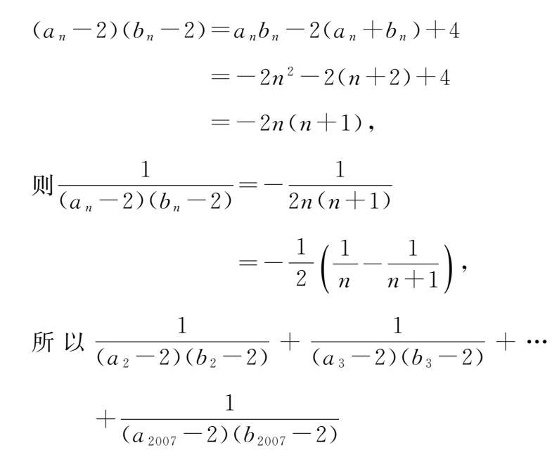 【解析】 由根与系数的关系得a n +b n =n+2,a nbn =-2n 2 ,所以