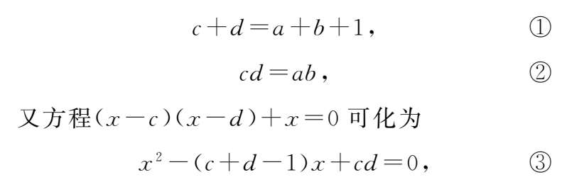 所以把式①、式②代入式③中得x 2 -(a+b)x+ab=0,即(x-a)(x-b)=0,