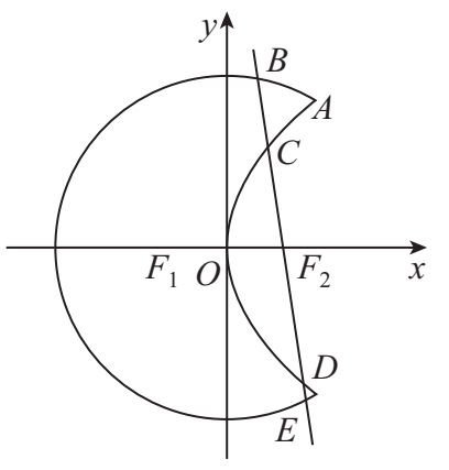 (2)过点 F 2 作一条与 x 轴不垂直的直线,分别与曲线 C 1 , C 2 交于点 B , C , D , E .