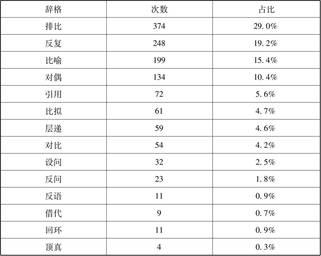 统计显示,在元旦社论语料中,共使用了1 291处辞格。具体情况见表3。