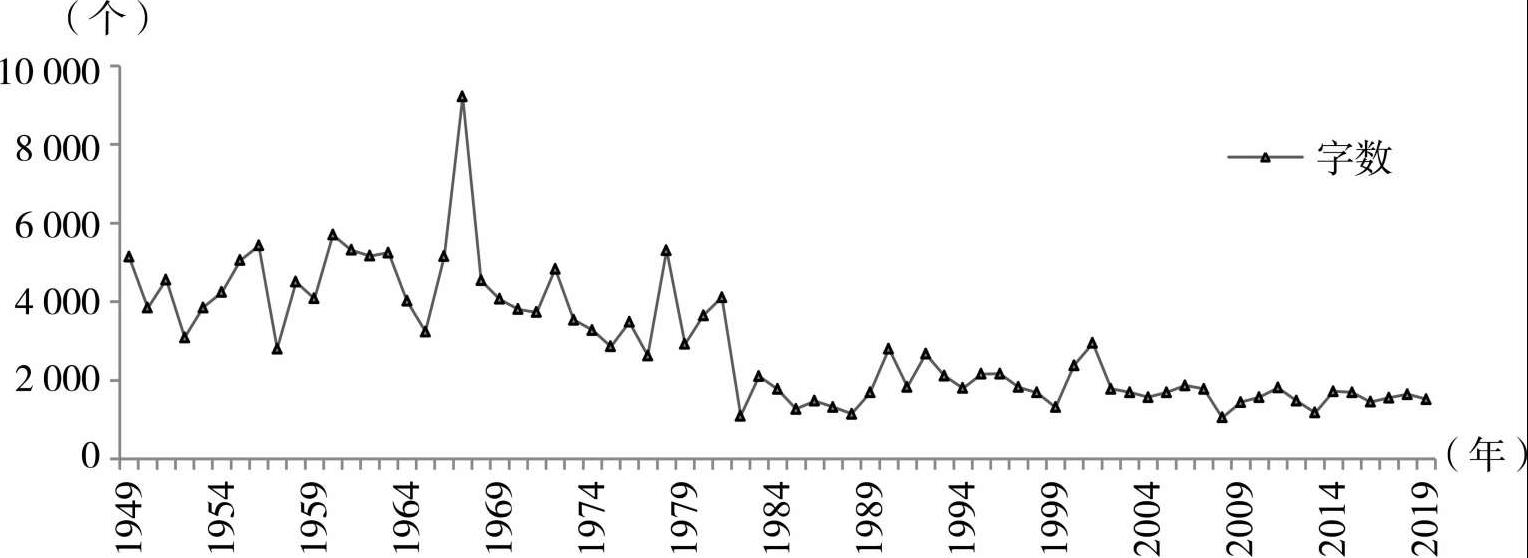 图1 1949—2019年《人民日报》元旦社论字数的变化情况