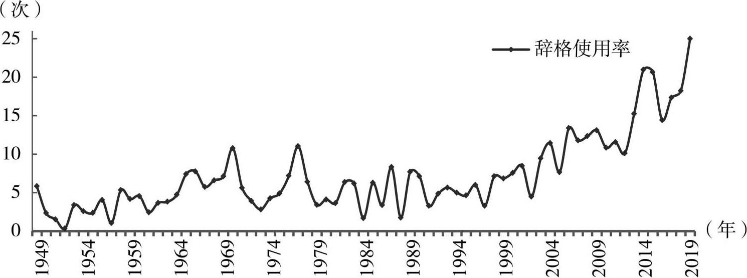 图7 1949—2019年《人民日报》元旦社论每千字的辞格使用频率