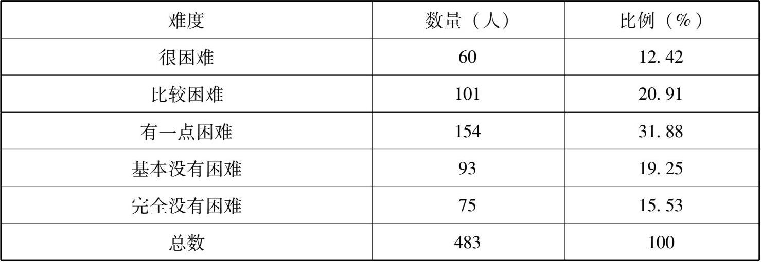 调查结果显示,菲律宾华人在与别人使用华语交际时,大多数还是认为有一点困难。觉得有困难的有 315人,占 65.22%,其中 154人(31.88%)觉得有一点困难;101人(20.91%)觉得比较困难,60人(12.42%)觉得很困难。菲律宾华人觉得使用华语交流有困难可能存在以下几种情况:第一是觉得华语本身很难或者华语的使用很困难;第二是在华语的读、写、说、听上有一些困难;第三是综合表达能力还不够好。