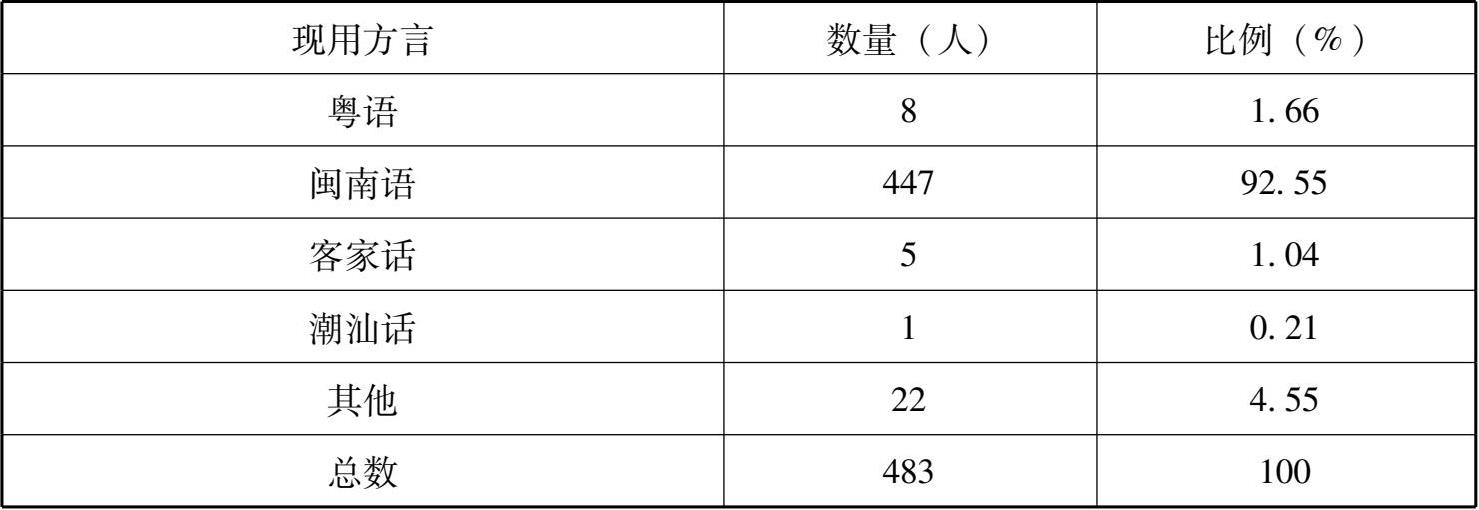为了进一步了解现在最常用的方言,本章还调查了菲律宾华人现在最常用的方言,调查结果统计如下: