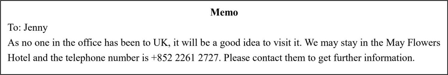 本单元练习的是应用文写作——备忘录。备忘录应用广泛,与其他公文相比不是那么正式,写作时应注意其格式及大小写的规范。备忘录写作的六个部分中,subject(事由)这一部分对于部分学生来说是难点,事由应简明扼要,紧扣主题,一般以简短的名词性短语或动名词短语来概括。