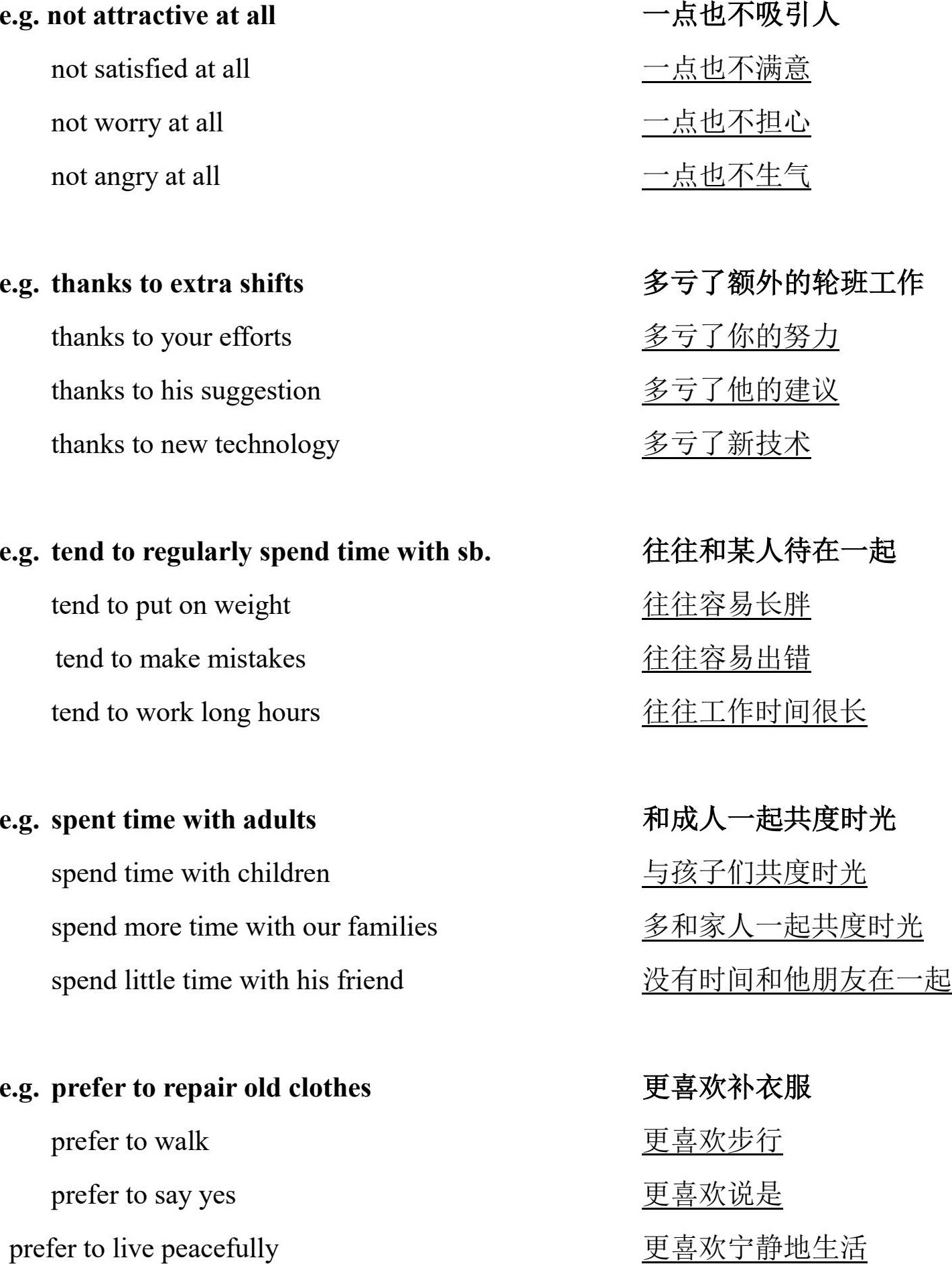e.g. Physical activity promotes good health. 身体运动促进健康。