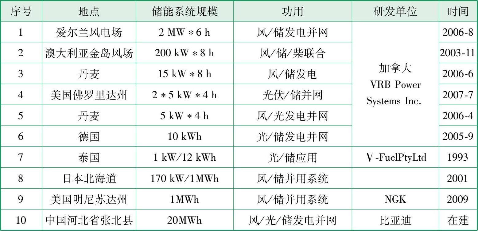 目前美国、欧盟、日本、中国等多个国家和地区纷纷开展了对可再生能源分布式发电的研究,已建成了大量的分布式发电系统,开展了分布式发电系统对可再生能源的利用、系统的并网、微电网的储能等各方面的研究工作,建立了大量的示范工程,见表1.1。
