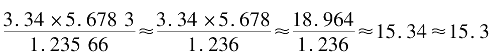 (2) While conducting multiplication or division, the least digit of significant figures (considering the number as a whole, not just the decimal portion) determines the digit of significant figures in an answer. Round the others with more significant digits off. Take one more digit for calculation then round off the final result based on the standard significant digits.For example,
