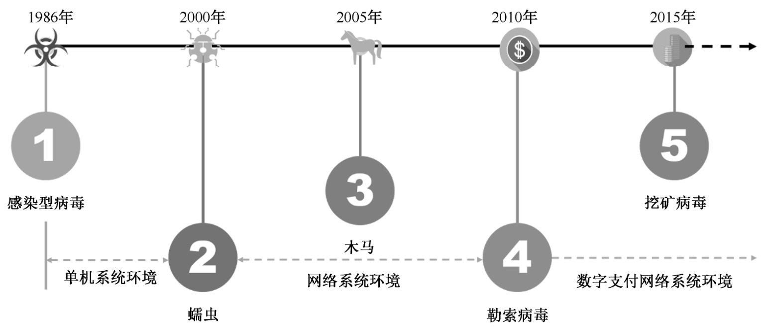 下面将以时间轴为指引,分别从计算机病毒外部环境变迁、计算机病毒攻击载体、计算机病毒攻击者等视角来系统梳理计算机病毒的进化发展脉络,在一窥计算机病毒跌宕起伏的发展史的同时,也可让我们预测展望计算机病毒的未来发展趋势。