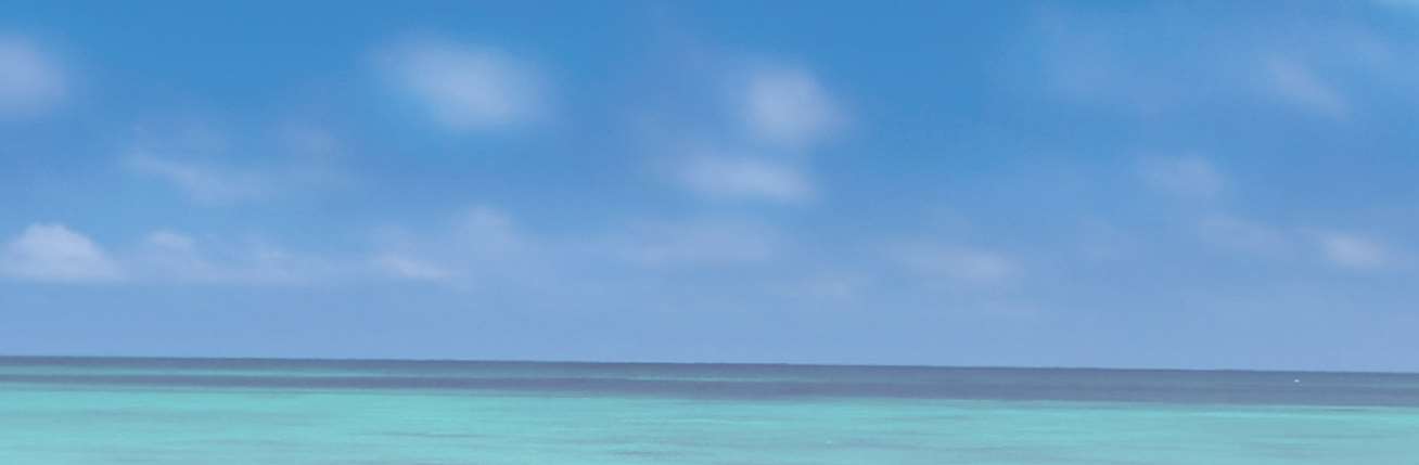 水天一色,在阳光的折射下,海水呈现淡绿色