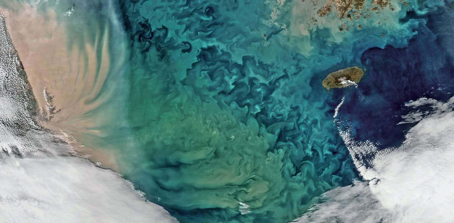 卫星照片显示下黄海的美丽的彩色旋涡