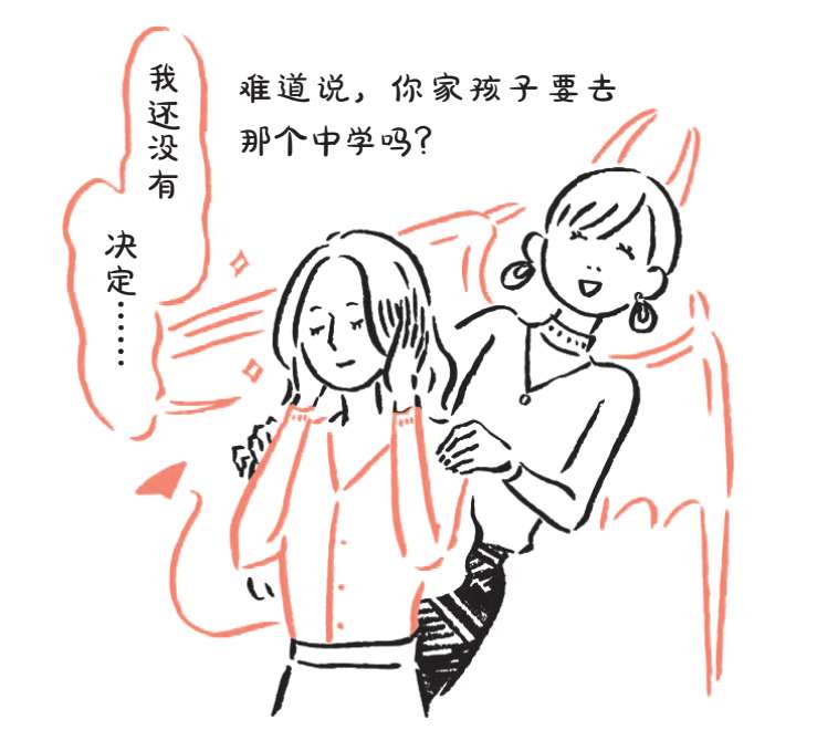 如果哪位妈妈友(编者注:在日本,“妈妈友”是指年幼孩子的母亲之间的交友形式)毫无顾忌地询问“你家孩子去幼儿园面试了吗?”“你家孩子去了哪个小学?”,或许应该考虑一下是否要继续与她交往下去。 P1luyz3tu1BXKkXA+FCUpusKlz2v8OOkfUUXBJa0KR+q0h2oy6XZZ+celgVA/1M3