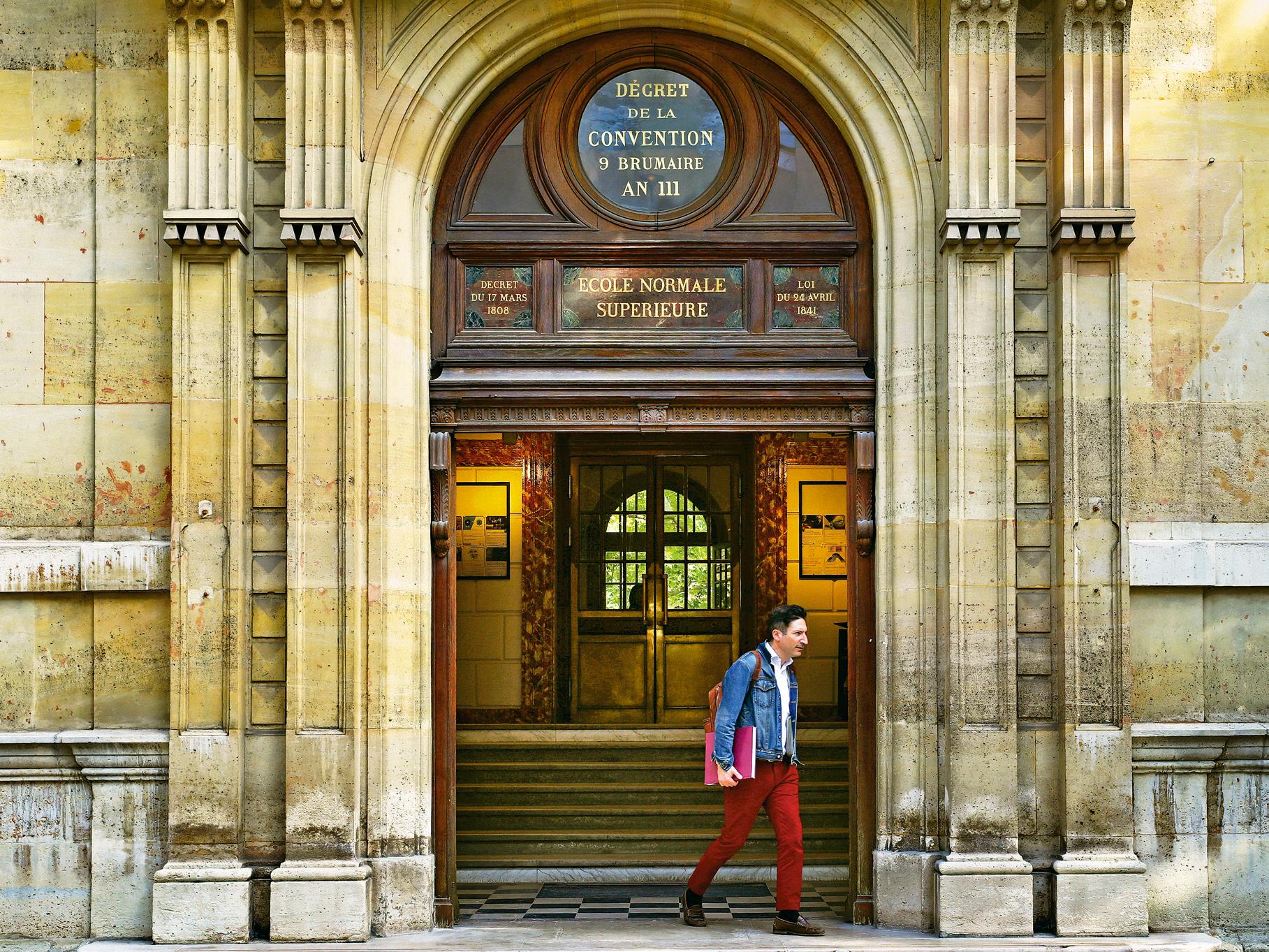 初秋时节,我们来到了法国巴黎,凉风裹挟着冷嗖嗖的水汽扑面而来,身上厚厚的风衣勉强能抵挡一阵阵袭人的寒气。塞纳河畔的街巷犹如迷宫,游走其中让人不由生出一种探宝的兴奋感,通体的寒意也渐渐消失了。时尚之都的贵族气,加之河岸两侧高楼的夹持,让人不禁呼吸急促起来。在巴黎这座世界闻名的文化气息浓厚的城市,散落在街市各处的咖啡馆、博物馆、书店和电影院,以及丰富多彩的文艺活动空间,随便一处就可以成为年轻人接受博雅教育的场所。我们在一条叫作余乐姆的小街上,终于找到如同隐修院的巴黎高等师范学院。