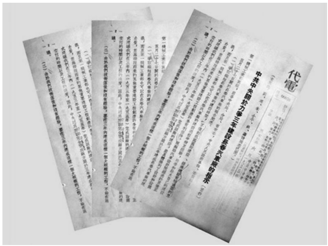 图2-1《中共中央关于力争三年建设长春汽车厂的指示》文件剪影