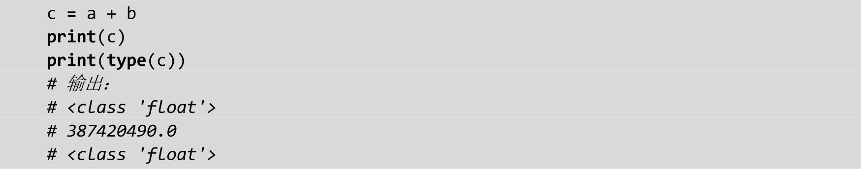 这里需要注意的是,将一个int与一个int相加将得到一个int。但将一个int与一个float相加则将得到一个float。这是因为Python会把int强制转换为float以进行加法运算: