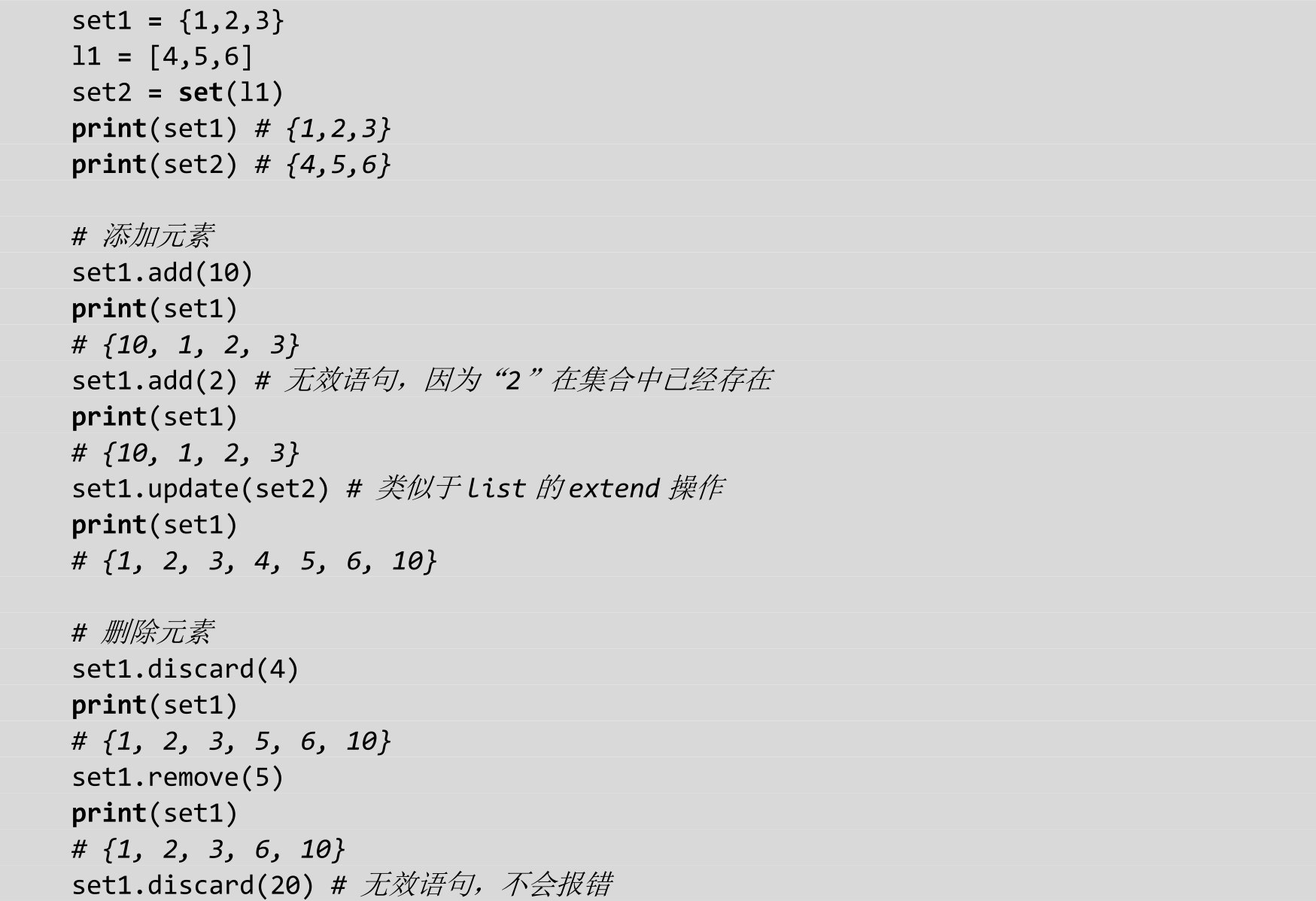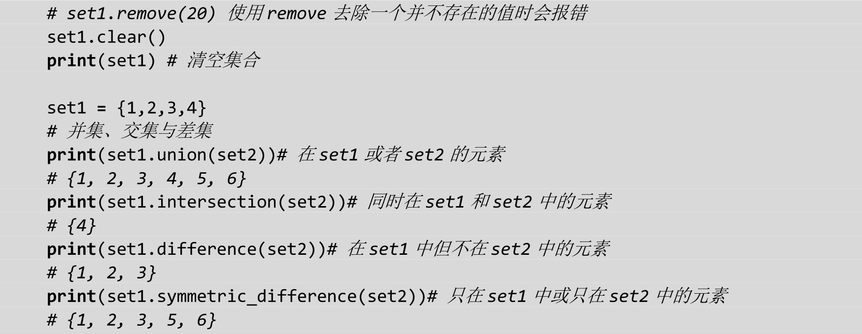 ●Set,一个包含元素的集合,其中的元素是无序的。