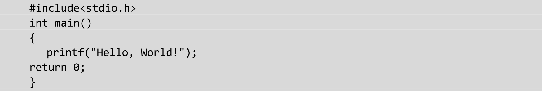 输出一行“Hello, World!”,在C语言中需要的程序语句是这样的: