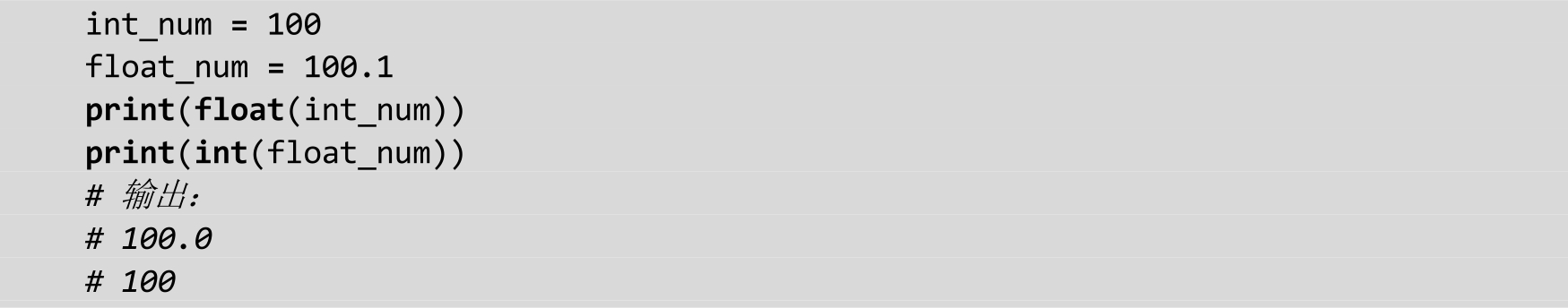 使用内置的关键字进行int与float之间的强制转换是经常用到的: