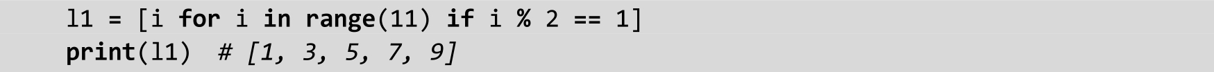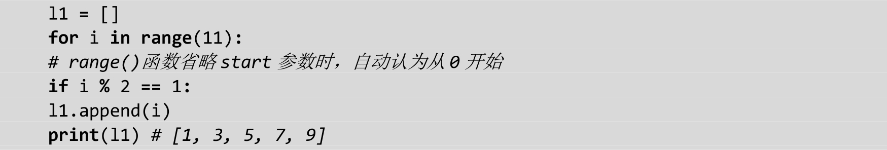 说到循环,就不能不提列表解析(或者翻译为“列表推导”),在形式上,是将循环和条件判断放在了列表的“[]”初始化中。举个例子,构造一个包含10以内所有奇数的列表,使用for循环添加元素: