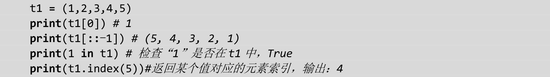 提示:元素可修改与不可修改是列表与元组最大(或者说唯一)的区别,基本上除了修改内部元素的操作,其他列表适用的操作都可以用于元组。
