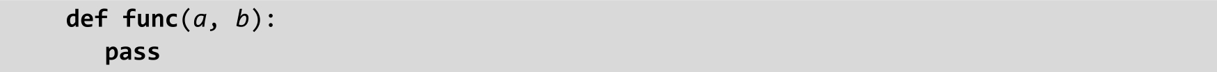 对于暂时不想实现的函数,可以使用“pass”作为占位符,否则Python会对缩进的代码块报错: