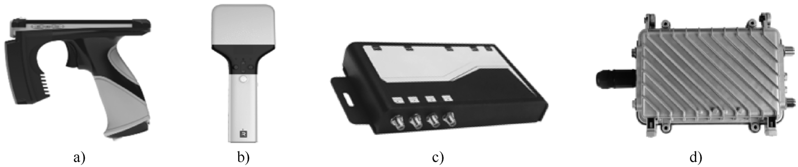 a)RFID手持机 b)RFID蓝牙手持拍 c)RFID固定式读写器 d)2.4GHz户外全向读写器