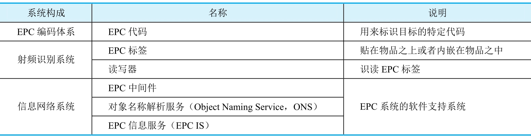 产品电子代码系统,即EPC系统,是一个非常先进的、综合性的复杂系统,其最终目标是为每一单品建立全球的、开放的标识标准。它由EPC编码体系、射频识别系统及信息网络系统三部分组成,主要包括六个方面的内容,如表2-22所示。