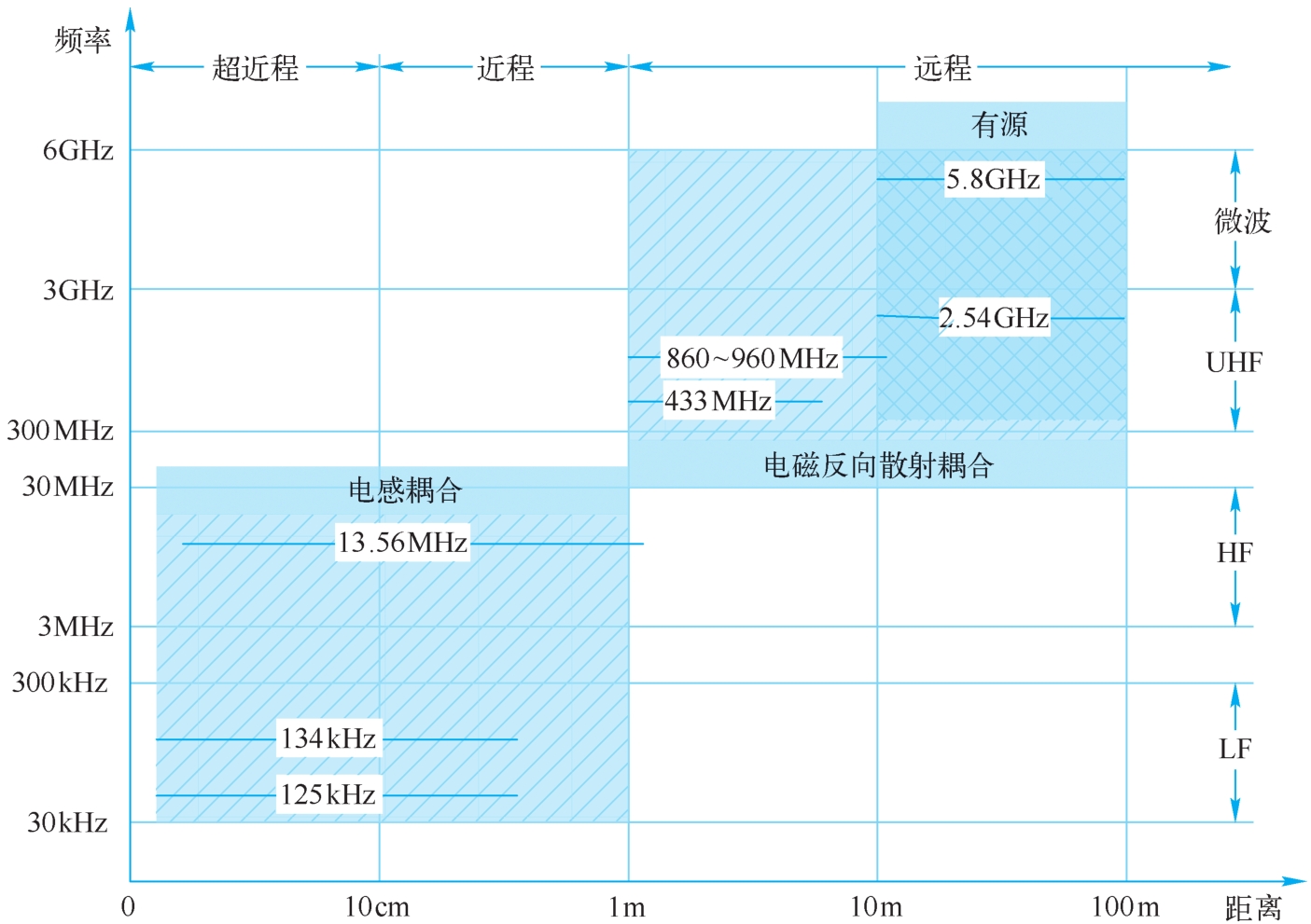 另外,按标签的工作距离,电子标签还可被划分为远程标签(>1m)、近程标签(10~100cm)和超近程标签(0.2~10cm)。