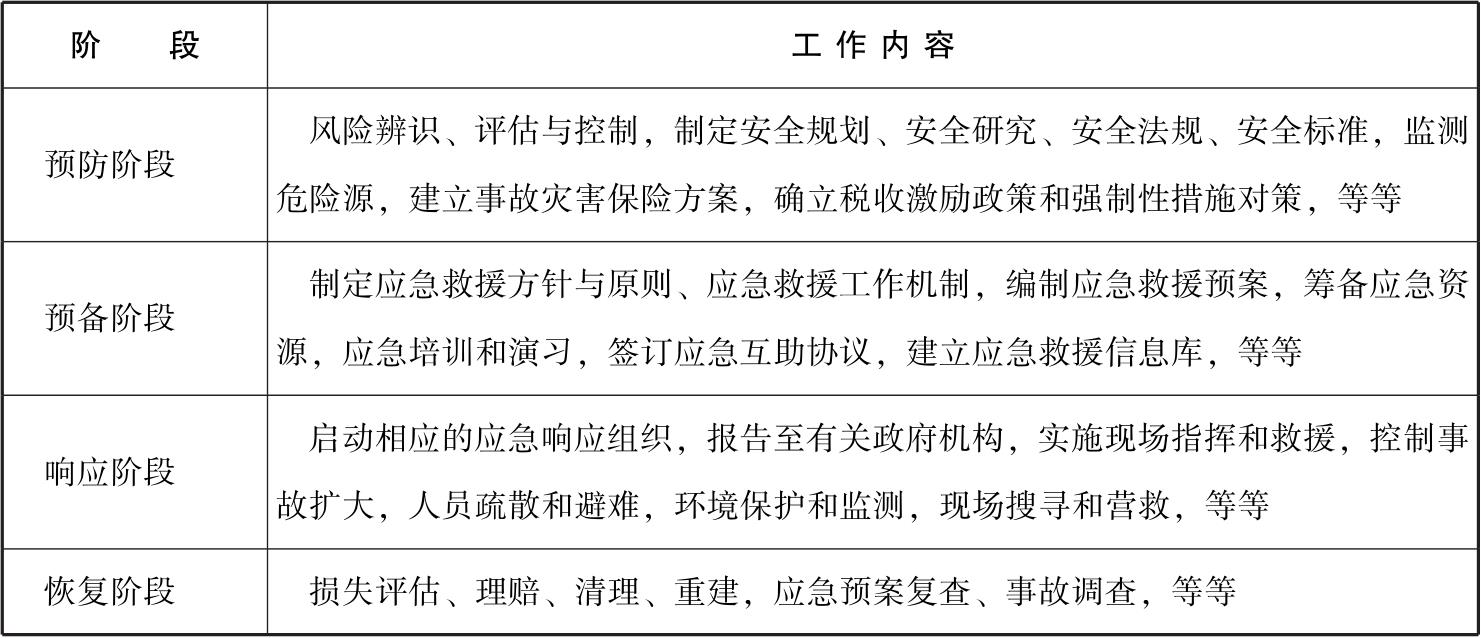 应急响应体系包含“预防→预备→响应→恢复”等阶段。相对而言,虽然每个阶段都有独立的目标,但在实际情况下,各阶段之间并非相互孤立存在的,而是相互重叠的。