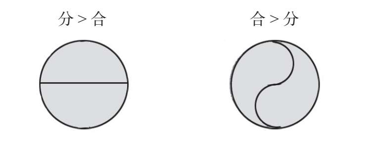 西方人“分大于合”,东方人“合大于分”,如图 1–2 所示。