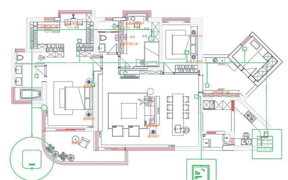 木工交底阶段所需的标准化图纸:灯具点位图(图2.3.2)。