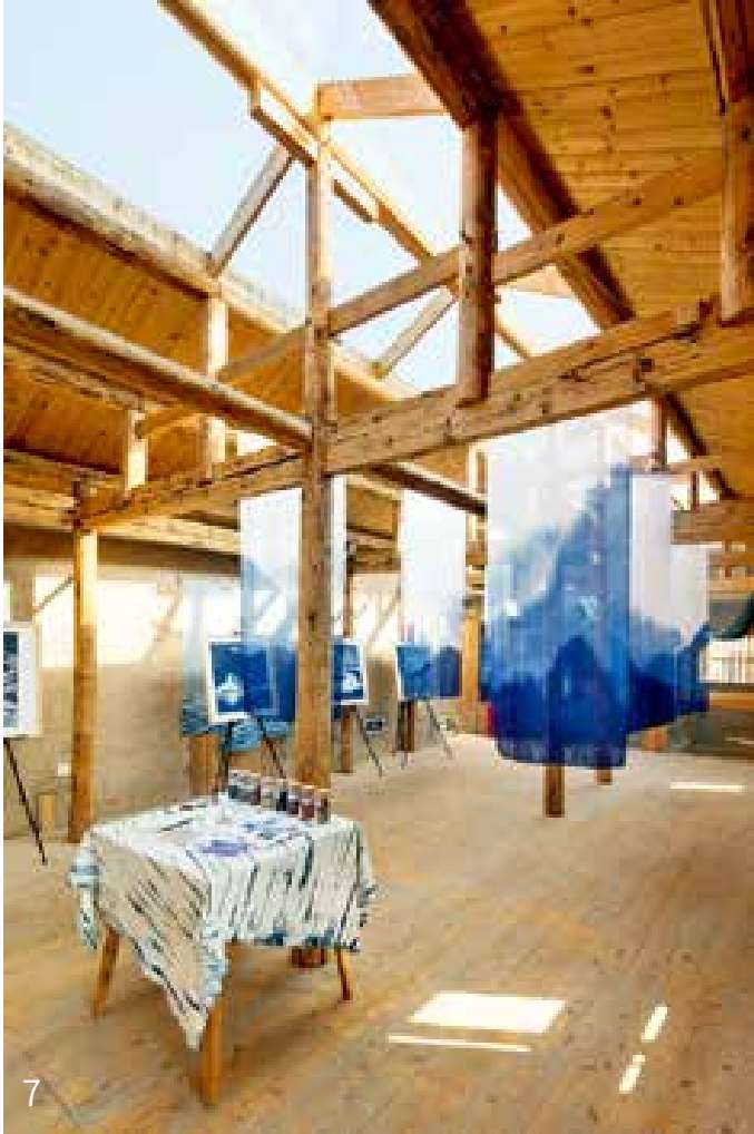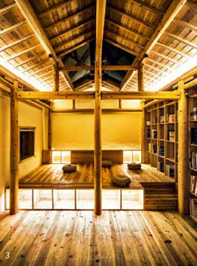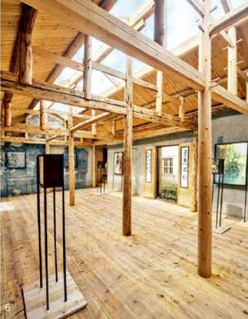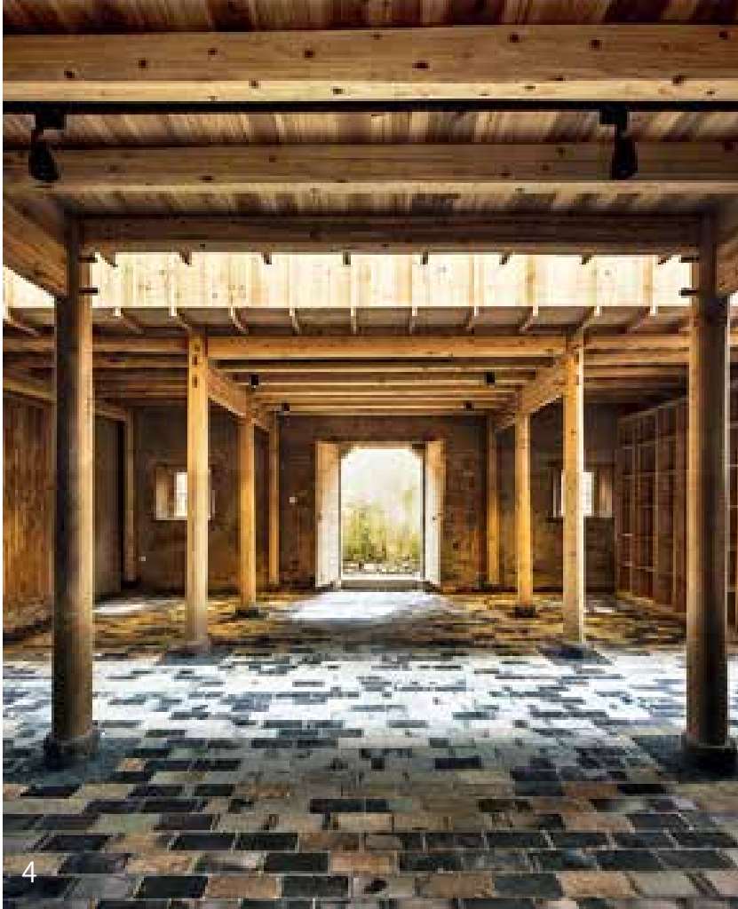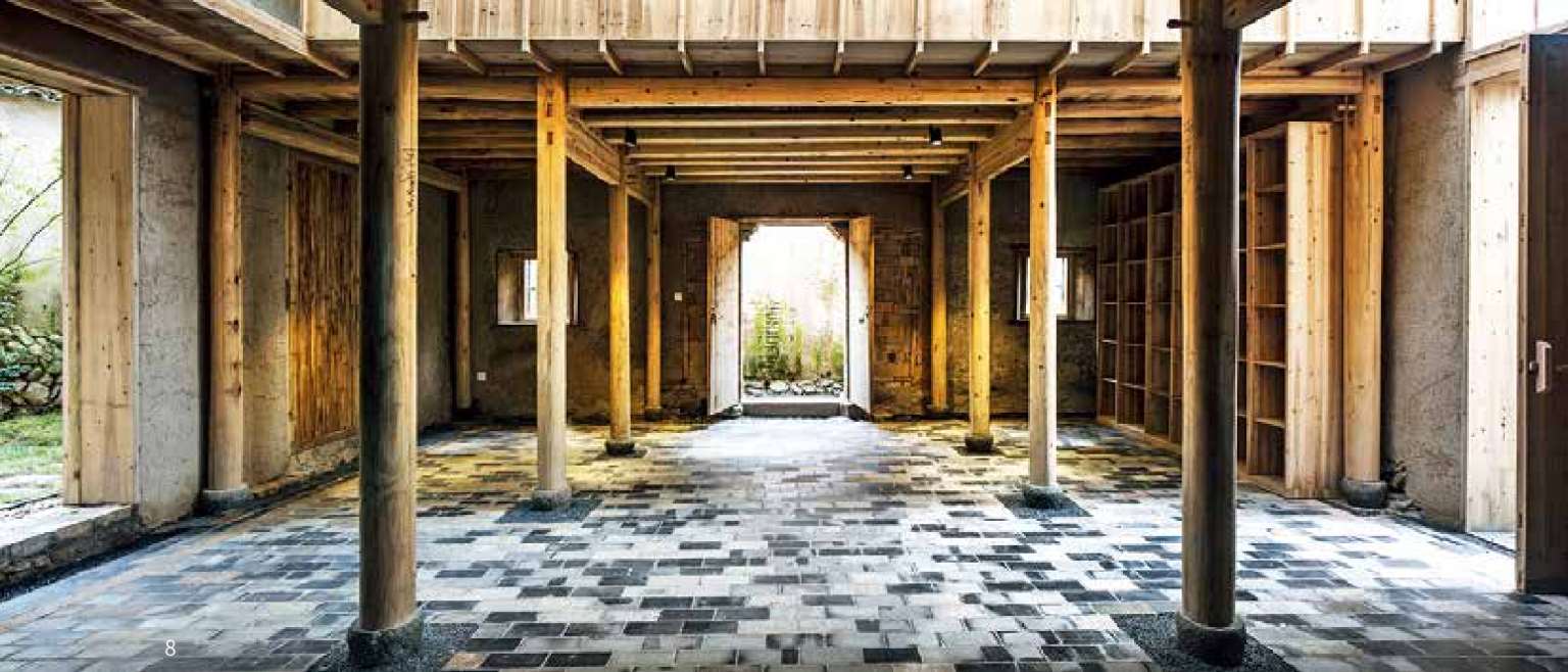 浙江丽水平田村的农耕馆位于村庄核心区,原来是几栋破损严重的夯土村舍,虽然其本身不是历史文化建筑,但是所处位置对于村庄整体形态以及村里的公共活动区域都有重要作用,形象影响较大。因此,将之改造成为新的村民中心,展示平田村的农耕文化,并作为手工竹艺作坊,支撑村里的文化配套,兼具文化交流功能。农耕馆包括南北两栋相邻的房子,南侧是主体,北侧是艺术家工作室,中间为手工作坊,一层空间内陈列着老式的农耕工具,同时也展示了传统夯土墙建筑和其中的木结构(图片来源:周洋)