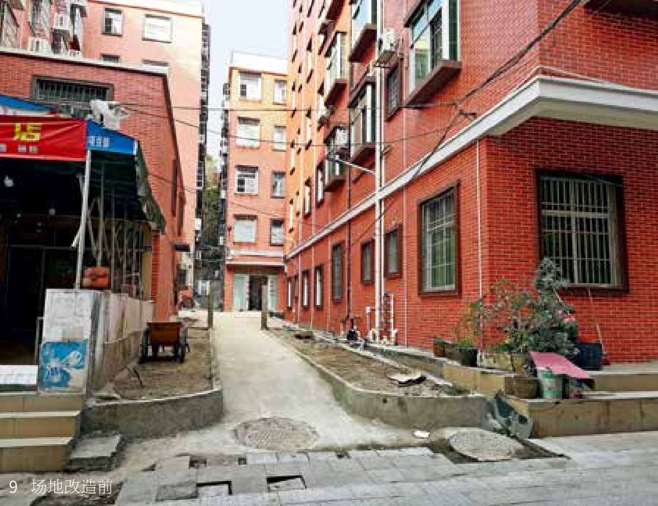 广东珠海横琴下村场地原有两根麻石柱子,是村里的历史建筑倒塌后遗留下来的(见左图)。通过重新梳理周围环境,清除违章搭建的杂物棚子,充分利用清理出的场地空间,将柱子作为过往的积淀留存,改造后成为新的公共空间元素。