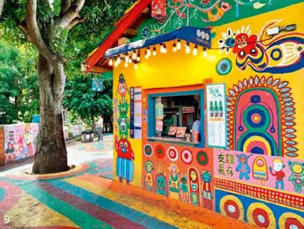 小花小草、外星人、熊猫,从墙面画到门板,从地板画到围墙,连地上的水沟盖也不放过,缤纷的涂鸦中呈现出一种梦幻的趣味