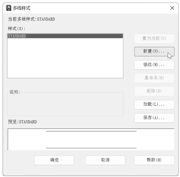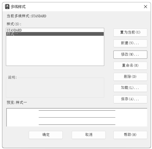 按钮返回“多线样式”对话框,结果新的多线样式出现在预览框中,如图3-19所示。